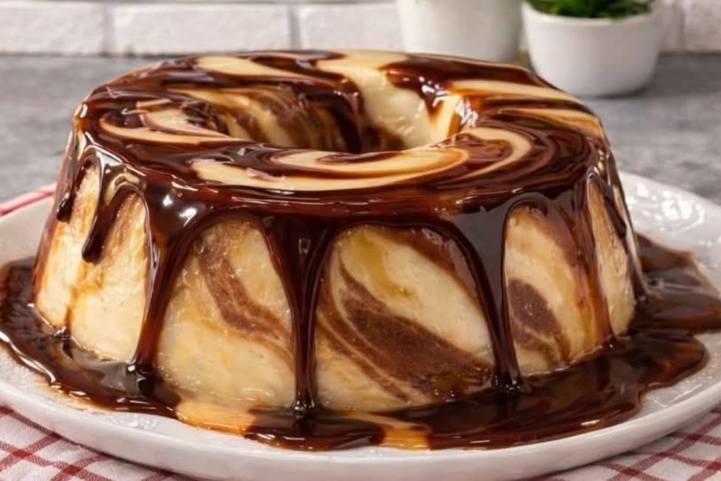 O pudim mesclado de Ninho com chocolate é uma sobremesa gelada, cremosa e com um visual incrível. A mistura das duas camadas cria um efeito marmorizado que lembra sobremesas de confeitaria, mas que pode ser feito facilmente em casa.